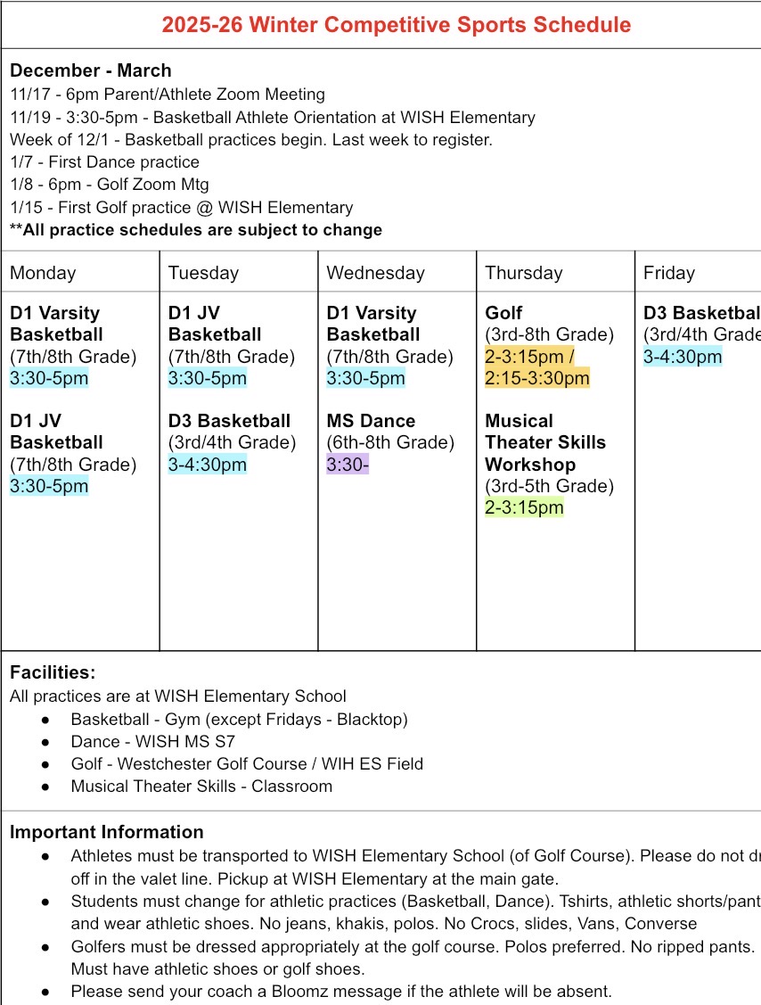 - Wednesdays 3:30-5:30pm @ WISH Middle School